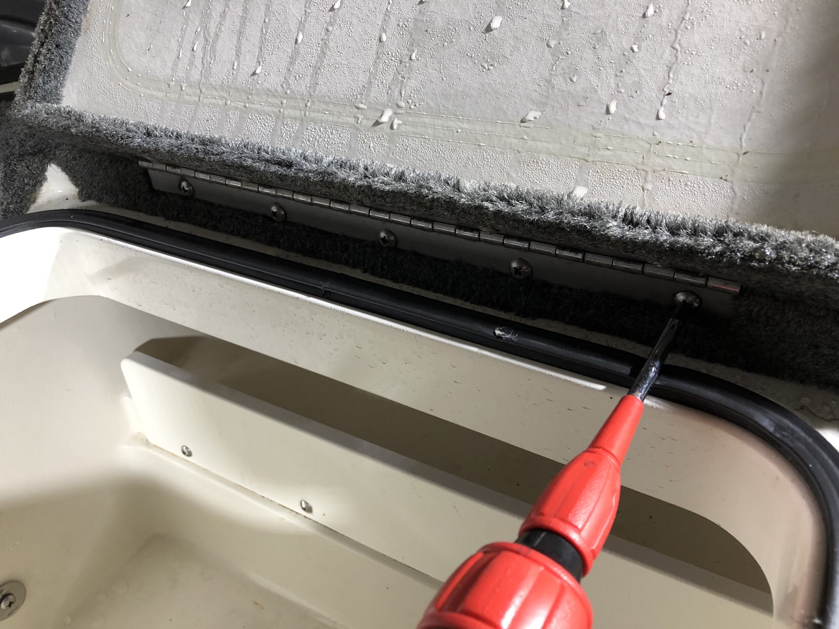 仕上げは磨き作業です。どうしても細かい傷が付いてしまうボートですが、最初のコンパンド(粗め)でトップコートのクリアを1枚削るイメージで時間をかけて磨きます。