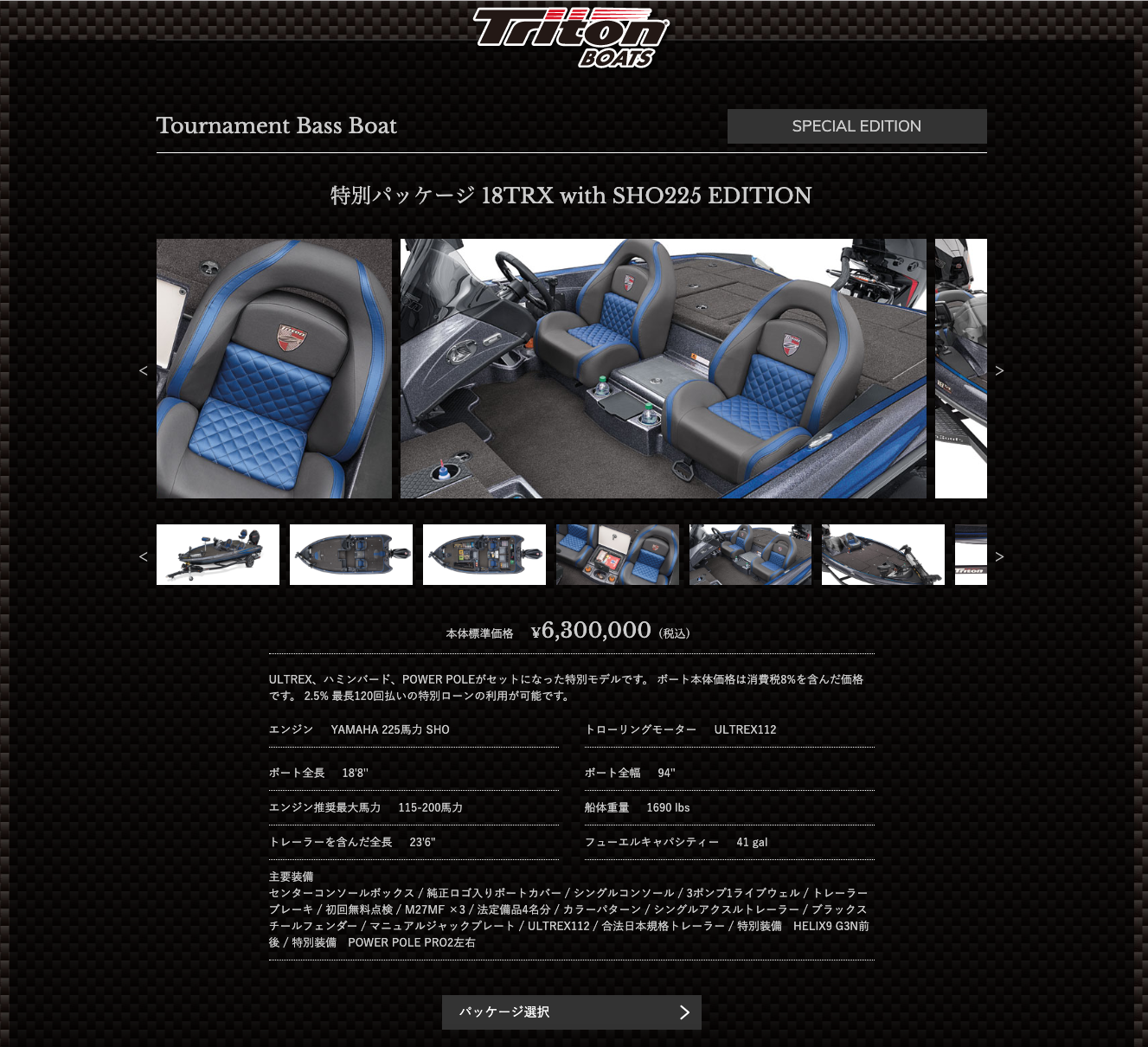 18.8フィートの船体にSHO225を搭載したホットモデルの18TRXにすべてを詰め込んだ特別仕様です。