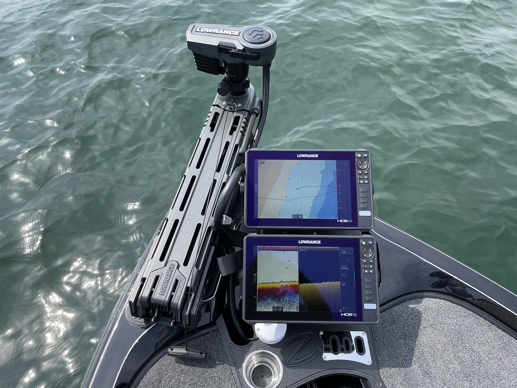 12インチ二台という大型魚探の仕様となりましたが丁寧に取り付けしスタイリッシュに収まりました。
