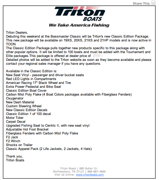 - TRITON BOATS CLASSIC EDITION
